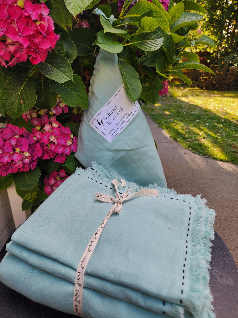 Our artisans, the silent poets of our tale, infuse their love into every stitch, transforming raw linen into a masterpiece that transcends the ordinary.Our linens are not mere sheets; they are love letters written in the language of comfort.Imagine sinking into the softness of a cloud, enveloped in the warmth of a lover's embrace. That's the sensation we strive to deliver—a sensory symphony that invites you to surrender to the tranquility of a dreamy haven.