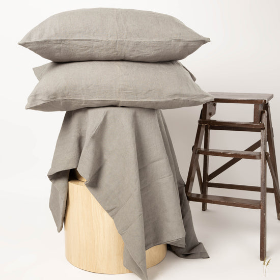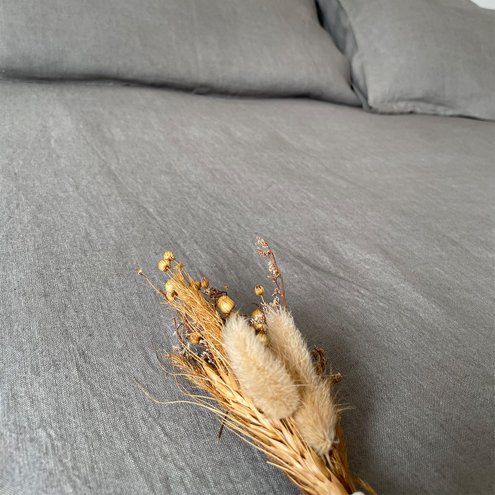 Perfect for creating a cozy retreat, this bedsheet invites you to unwind in style after a long day, enveloping you in comfort as you drift off to sleep. Add a touch of understated elegance to your bedroom with our charcoal linen bedsheet, a modern classic inspired by the natural beauty of New Zealand.