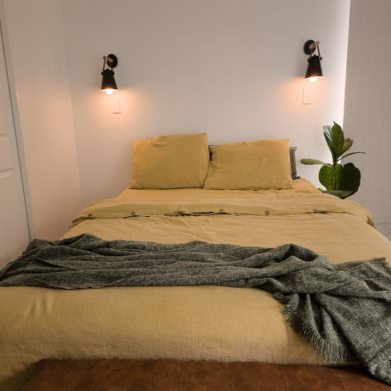 Step into the realm of modern elegance with the Chrome Linen Duvet Set.