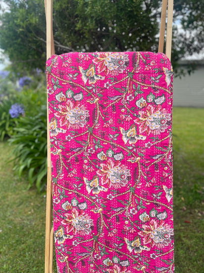 Our pure cotton Kantha quilts/bedspreads are a true labour of love, handcrafted from two layers of soft cotton and brought to life with intricate hand-stitching.