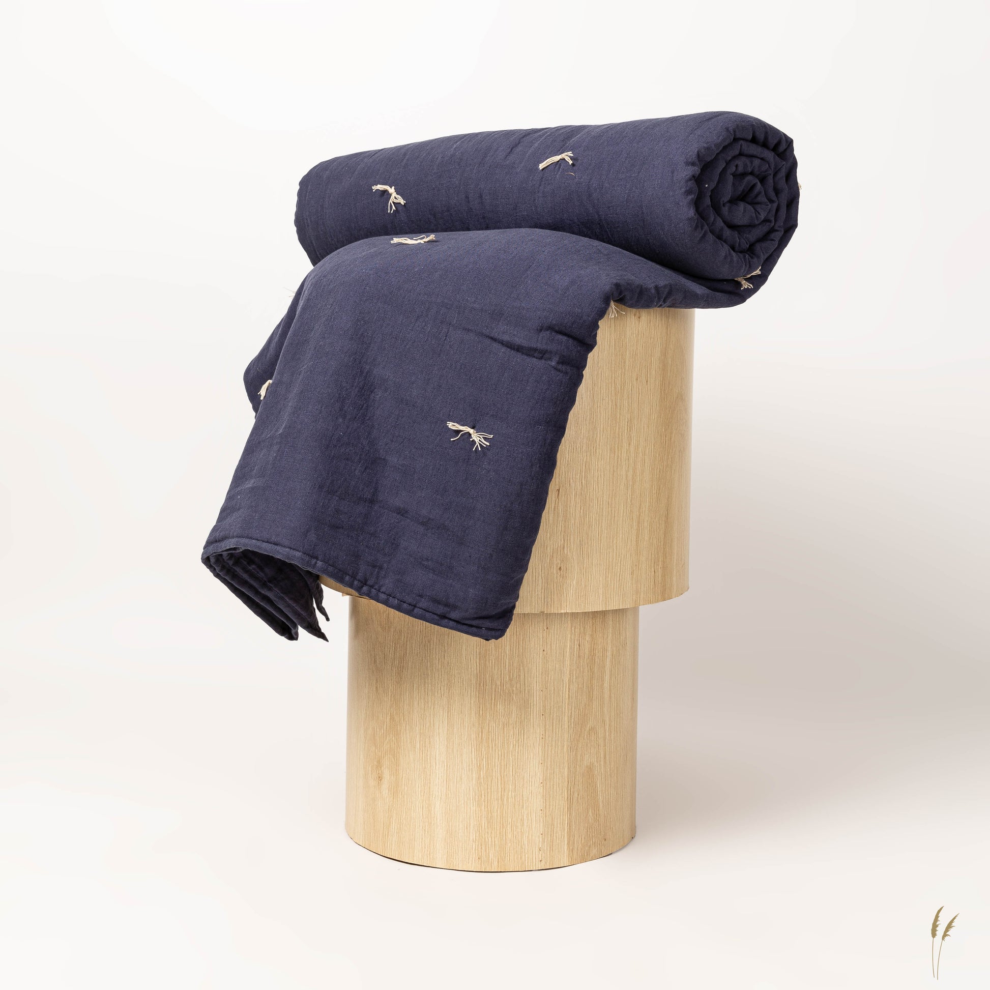 The rich indigo blue hue adds a touch of sophistication to any bedroom, creating a sanctuary where relaxation knows no bounds. Whether you're curling up with a good book or drifting off into a peaceful slumber, our quilt ensures that every moment is wrapped in comfort.