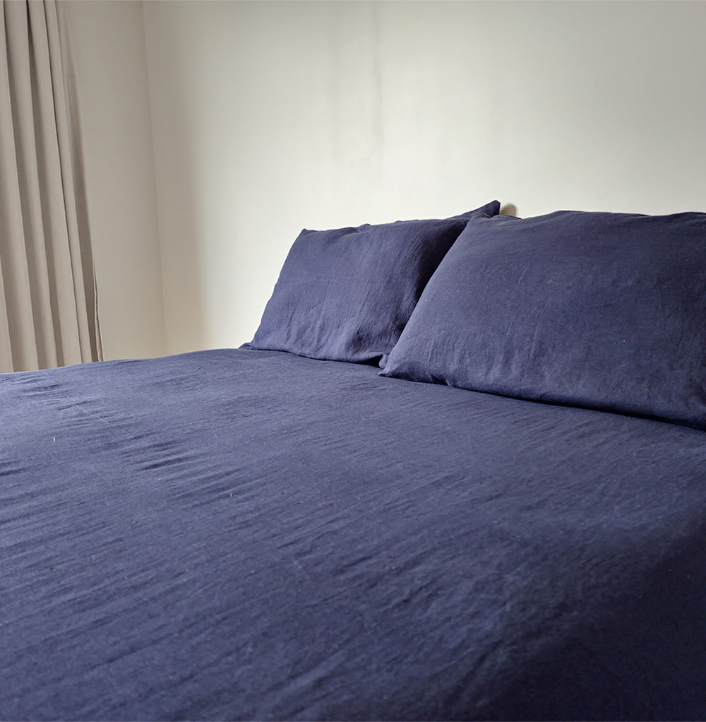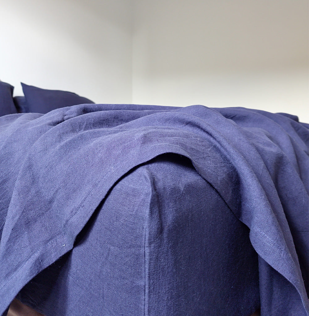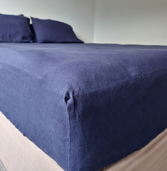 Infuse modern sophistication into your bedding with the Indigo Blue Linen Fitted Sheet. The deep indigo hue complements the premium linen fabric, creating a sleek and comfortable foundation for your mattress.