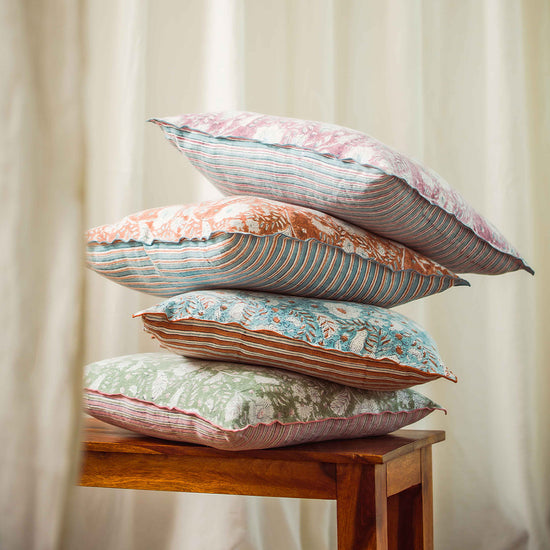 Using hand-carved wooden blocks, each colour is carefully layered, resulting in a uniquely detailed and vibrant pattern. Subtle variations from each press bring warmth and character, making every piece a true work of art. The Marlowe Print adds a refined, artisanal touch to any space, celebrating the heritage and craftsmanship of block printing with modern elegance.