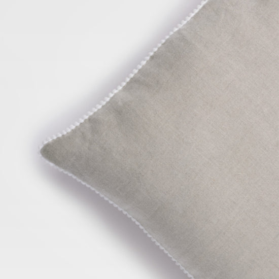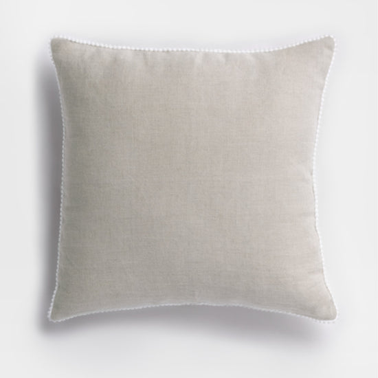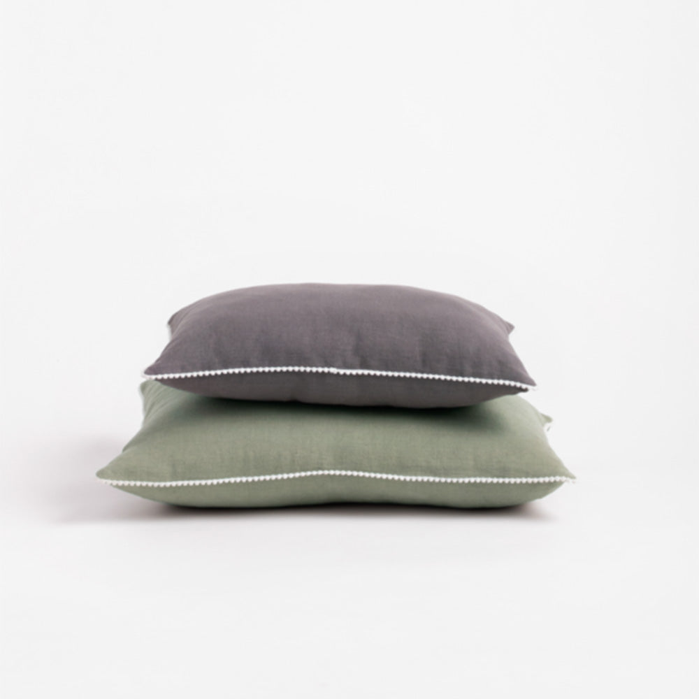 Each cushion cover is crafted from premium European linen and finished with delicate pom-pom lace detailing around the edges, adding a touch of timeless charm. Thoughtfully made by our artisans with care and attention to detail, this collection is perfect for creating a refined, cozy atmosphere in your living or bedroom space. Embrace the beauty of simplicity with these exclusive hand-stitched designs, made to bring warmth and elegance to your home.