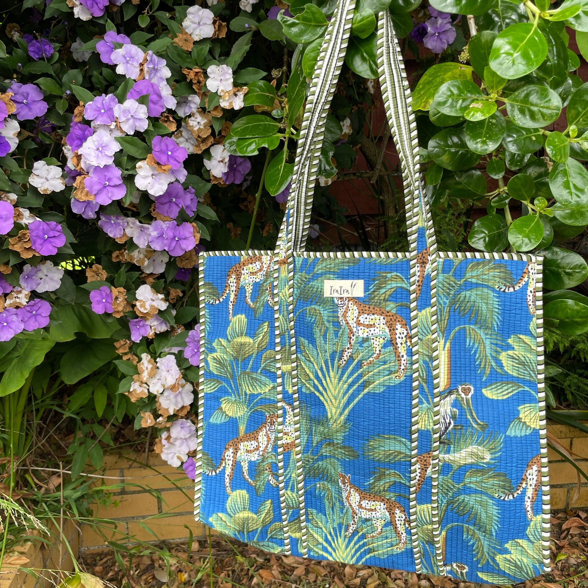 Reversible 100% Cotton Tote Bag - Blue Jungle