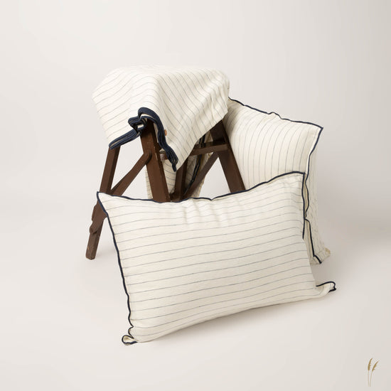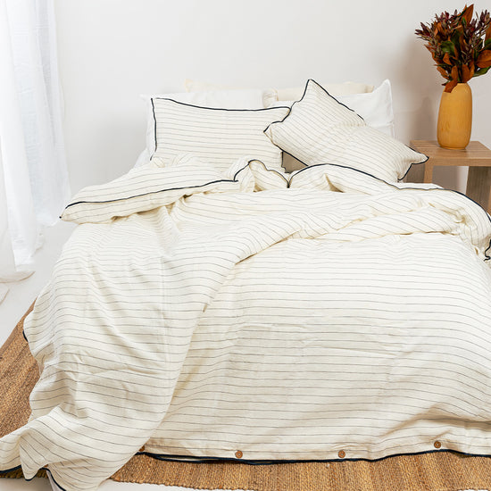 Experience the warmth of nature with our Sapphire Dreamscape Linen Duvet Set with blue needlework edges.